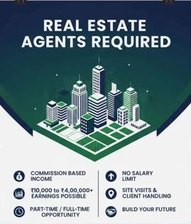 Are you looking for a lucrative career in real estate? We're hiring passionate individuals to join our team of real estate agents. This commission-based income opportunity allows you to earn ₹10,000 to ₹4,00,000+ depending on your sales. We offer part-time and full-time roles, giving you the flexibility to work according to your schedule. Your responsibilities will include site visits, client handling, and more. There’s no salary limit—earn as much as you put in! Build your future in the real estate sector and grow with us.
