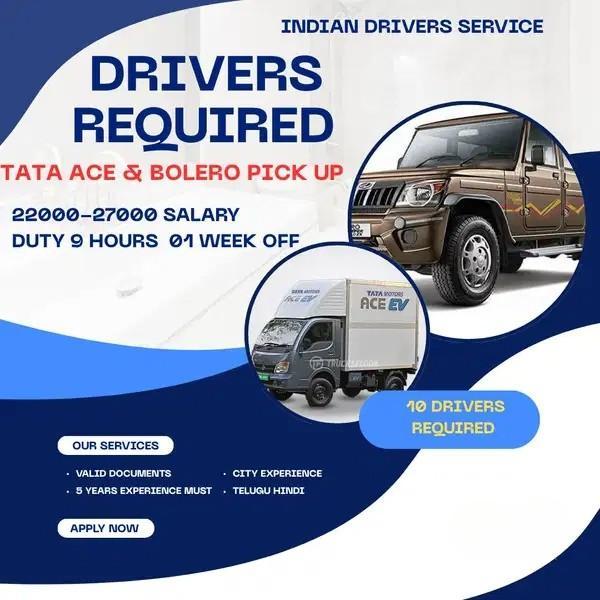 Edit Transportation Jobs Tata Ace Driver Jobs for Bolero & Hyderabad – ₹22K–₹27K Monthly Salary Home Classifieds Jobs Transportation Jobs Tata Ace Driver Jobs for Bolero & Hyderabad â Report Spam Spam Confirmation Why do you want to mark as Spam? Mark Fav. Email Friend Email a Friend Copy URL 28 Apr 2026 03:35 PM 2 views secret, An Individual Contact User Send Email to User No Phone number Hyderabad, TG Yousuf Guda, Hyderabad, Telangana Classified Listing Type Job Offered Employment Type Full-time Experience 6 Year(s) Contact Person IDS SYED We are hiring experienced drivers for Bolero and Tata Ace vehicles at our Yousufguda location in Hyderabad. This is a great opportunity for candidates looking for stable full-time driving jobs in the transport and logistics sector. Position: Driver (Bolero & Tata Ace) Salary: ₹22,000 – ₹27,000 per month Job Type: Full-time Location: Yousufguda, Hyderabad, Telangana Tags #driverjobs #bolerodriver #tataacedriver #commercialdriver #deliverydriverjobs #transportjobsindia #drivingjobsindia #hyderabadjobs #fulltimejobsindia #jobopportunity #logisticsjobs