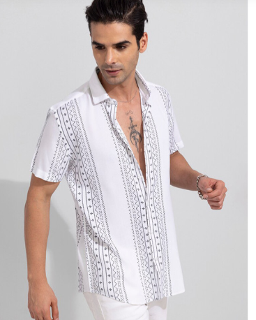 Stay ahead of the style curve with the Snitch White & Black Geometric Printed Slim Fit Casual Shirt. This shirt combines classic black and white colors with a trendy geometric print that brings a fresh and modern look to your wardrobe. Crafted with a slim fit design, it provides a tailored silhouette that enhances your style while offering comfort.