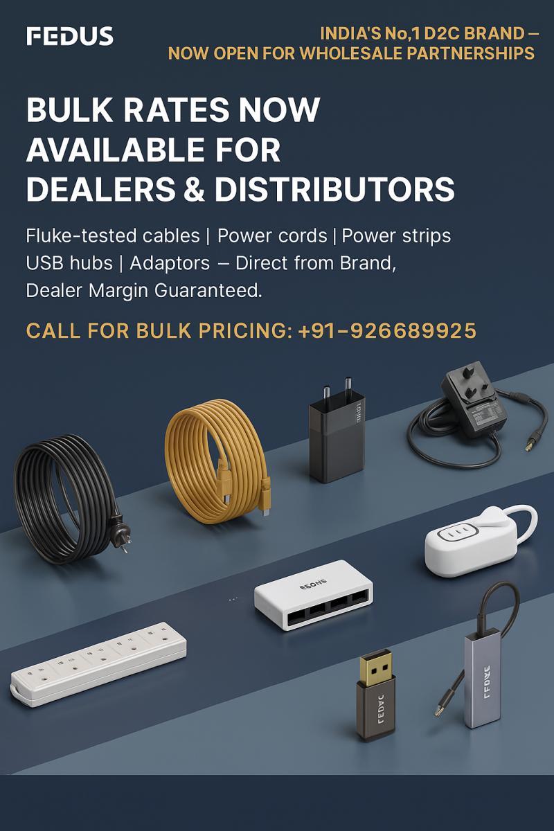 At FEDUS, we believe that quality should never be restricted. In today’s world, where data consumption, home appliances, and networking needs are increasing rapidly, keeping your hardware up-to-date is essential. Talented creators, gamers, musicians, and everyday users in India deserve access to the same quality cables, power strips, cleaning kits, USB LED bulbs, CCTV camera cables, Laptop Sleeves Bags, and audio-video solutions available globally—without having to pay outrageous prices.