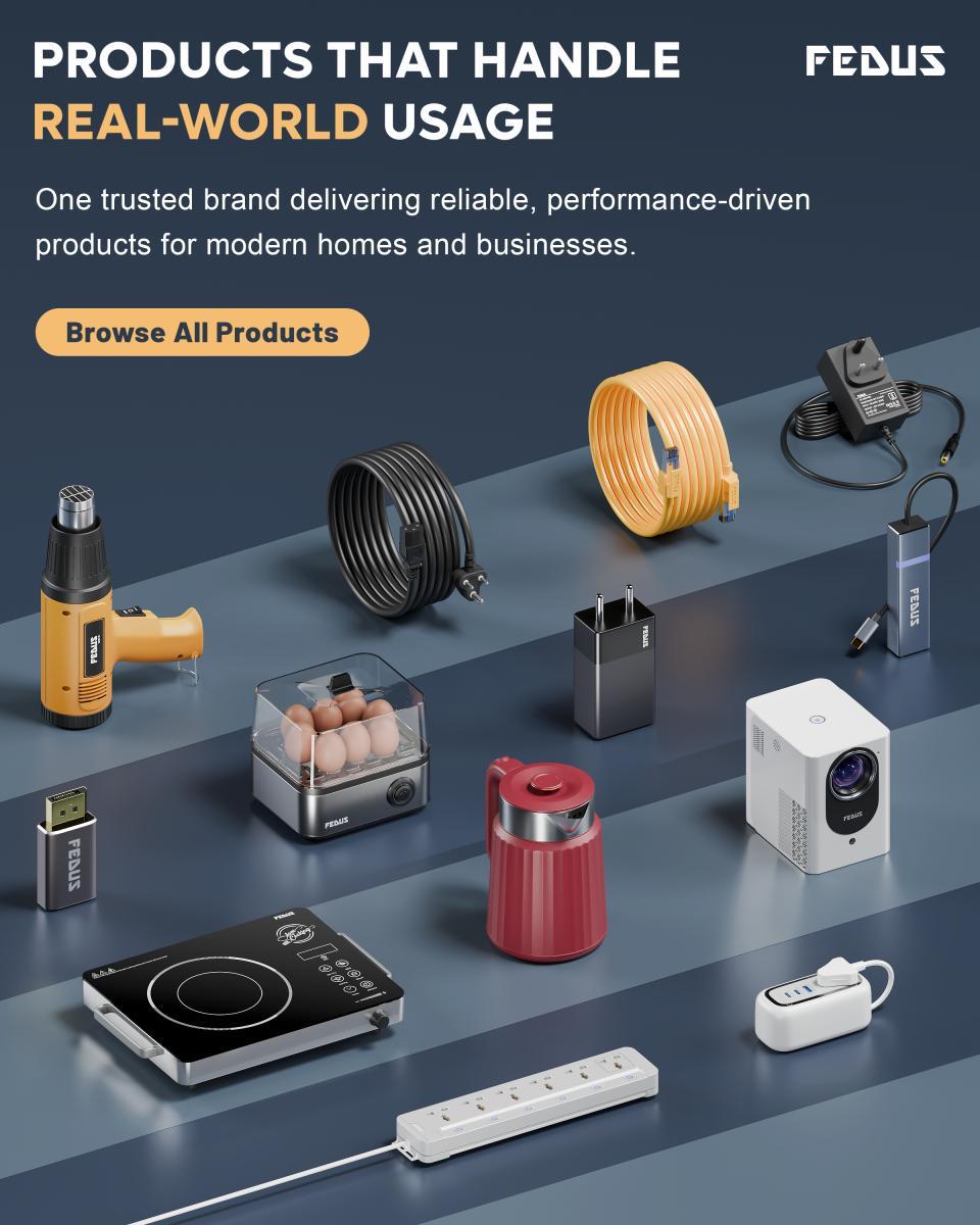 While buyers in foreign countries had access to premium-quality USB hubs, crimping tools, hot air heat guns, laptop accessories, electric kettles, cooler water pumps, and home appliances, Indian consumers were left behind with substandard choices. Recognizing this gap, we launched FEDUS in 2020 with a mission: to provide high-quality, durable, and affordable cables, electronics, and networking gear designed for Indian conditions.